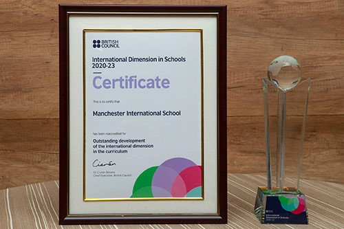 - Manchester International School has been conferred with the highly prestigious British Council International School Award. The award has been bestowed upon the school for effectively and efficiently implementing international ethos into its curriculum from Pre-KG to MYP.