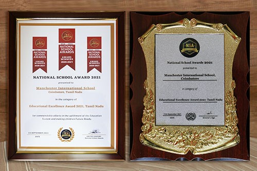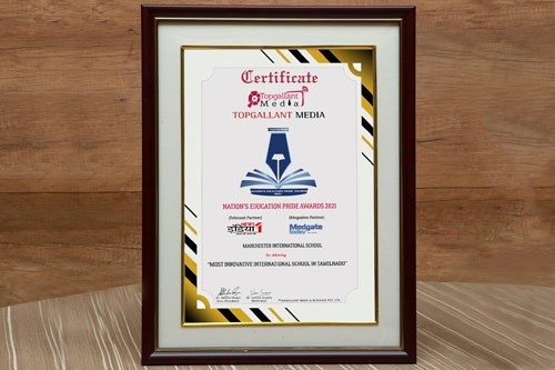 Manchester International School for achieving "Most Innovative International School in Tamil Nadu" Nation's Education Pride Awards 2021.