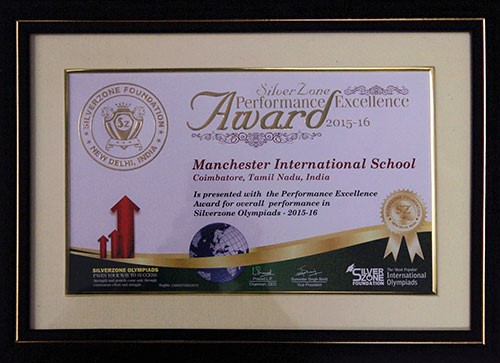 - Manchester International School is awarded "Performance excellence award " by Siverzone Olympiads for overall performance in Siverzone Olympiads 2015-16.