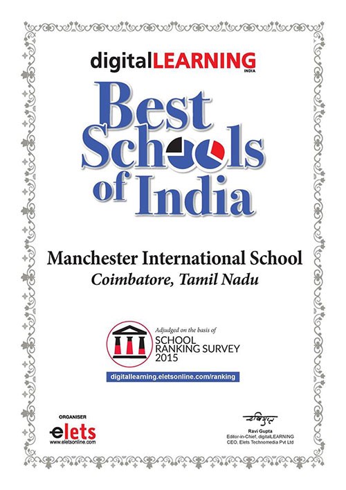 Manchester International School has been ranked as one of the best schools in India. by Digital Learning, School Ranking Survey 2015.